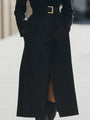 Aurora | Structured Pinstripe Belted Long Coat - Alden & Archer