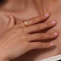 Azalea, a contemporary and stylish gold ring adorned with sparkling diamond simulants. The minimalist design and luxurious gold material make it a timeless piece that will enhance any outfit. Add sparkle to your look with this elegant accessory.