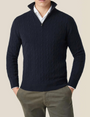 This cable-knit sweater combines timeless charm with modern functionality. The intricate cable pattern exudes sophistication, while the high-quality zipper and funnel neck add a contemporary touch, making it easy to layer and versatile. Crafted with attention to detail in Northern Italy, this sweater offers both warmth and style for any occasion.