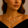 Crafted from high-quality copper and finished with a shiny gold finish, the necklace feels light and comfortable around the neck. The symmetrical flower shapes symbolize happiness, beauty, and balance – ideal for both everyday elegance and special occasions.
