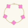 The Clover Bracelet with neon pink detail is a modern take on a timeless design. The iconic triple clover design exudes luck, balance, and elegance, while the vibrant neon pink accents add a striking, contemporary twist. Perfect for those who want to combine classic symbolism with a fresh, playful look.