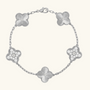 The Clover Bracelet with guilloché detail is an elegant addition to our timeless Clover Collection. The refined triple clover design symbolizes luck and balance, while the subtle guilloché pattern gives the bracelet a luxurious, silver-colored look. Perfect for those who love understated beauty with depth.