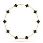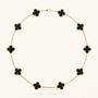 The Clover Necklace with 10 motifs in deep black is a bold and elegant piece of jewelry from our Necklace Collection. Each clover-shaped detail is carefully placed for a perfectly balanced look, making this necklace both eye-catching and refined. The black accent contrasts beautifully with the warm 18-karat gold finish—ideal for wearing solo or layered with other necklaces for a personal touch.