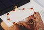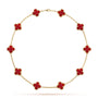 The Clover Necklace with 10 clover motifs in deep red is a powerful and elegant statement piece from the Necklace Collection. Each motif symbolizes luck and balance, while the rich red color adds a bold and feminine touch. The warm 18-karat gold finish makes this necklace a striking yet refined accessory that enhances any outfit.