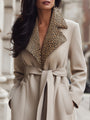 This stunning coat embodies **sophisticated elegance** while ensuring warmth during chilly days. Crafted from a premium **wool-blend fabric**, the coat features a striking **leopard-print collar** that adds a daring touch to its classic design. Perfect for winter outings or **semi-formal events**, this versatile piece is a statement of refined fashion.