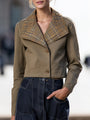 This **sophisticated** olive cropped jacket redefines **modern tailoring** with its standout oversized plaid collar, crafted from **lightweight cotton-blend suiting** that ensures both structure and comfort. Perfect for **smart-casual occasions**, this versatile piece pairs seamlessly with high-waisted trousers or denim for a polished look.