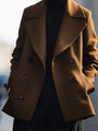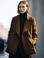 This stunning coat redefines **style** with its rich coffee hue and modern, cropped silhouette. Perfect for both professional **occasions** and casual outings, it features an oversized lapel collar and striking black button details, harmonizing **materials** and craftsmanship for a truly luxurious experience.