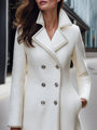 This exquisite **outerwear** piece is crafted from a rich **premium wool-blend**, offering both warmth and sophistication. Designed for the modern woman, the coat features a polished double-breasted silhouette that transitions seamlessly from **professional settings** to **evening dinners** with ease and grace.