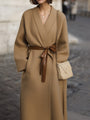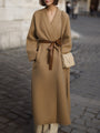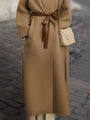 This stunning **camel** belted kimono-style coat redefines **sophisticated style** with its minimalist tailoring. Crafted from **premium structured fabric**, it boasts a smooth drape and luxurious hand-feel, making it ideal for both **daytime business** and **evening gatherings**. The open-front design and wide sleeves evoke a sense of modern elegance, while the adjustable leather tie belt allows for a versatile silhouette.
