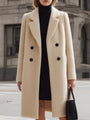 This stunning coat showcases a **double-breasted design** adorned with large black buttons and a wide notched lapel, effortlessly merging **style** with cozy warmth. Crafted from luxurious **textured wool**, this mid-length piece is perfect for city strolls, office wear, or casual outings in cooler weather, making it a versatile addition to your collection.