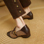 Combining vintage design with everyday sophistication, the Genira Leather Shoes are crafted from genuine leather and detailed with a classic T-strap and golden buckle. The blend of textured and smooth finishes creates visual depth, while the low heel ensures all-day comfort. A timeless addition to your wardrobe, ideal for both office elegance and casual polish.