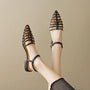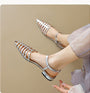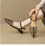 The Kiara Sandals pair bold design with lightweight comfort. Featuring a pointed silhouette and airy cage-style straps, they offer a flattering, feminine shape that shines in summer evenings, events, or polished daytime looks.
