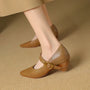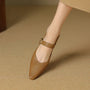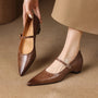 With a polished pointed toe and a delicate Mary Jane strap, the Lunovella Leather Heels are designed for understated sophistication. Crafted in smooth genuine leather with a low block heel, they offer comfort without sacrificing style — perfect from office hours to after-dinner moments.