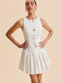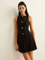 Metal-Button Pleated Tank Dress