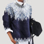 This women’s Fair Isle Christmas jumper brings festive charm and winter comfort in one cosy knit. Featuring a traditional Nordic-style yoke and soft crew neckline, it’s designed for layering with shirts or worn solo for a relaxed seasonal look. The warm feel and roomy fit make it perfect for cold-weather dressing, while the detailed pattern adds a touch of classic holiday style. Whether you’re heading to a gathering or keeping cosy at home, this jumper blends comfort and Christmas spirit effortlessly. Style with jeans or layered over a collared shirt for a timeless winter outfit.