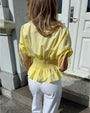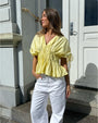Step into effortless charm with the Zelda™ yellow top—your go-to piece for warm-weather styling. Crafted from high-quality fabric, this top features delicate ruching details and adjustable sleeve ties to create a puffed look that’s both playful and polished. Whether you're heading to a birthday celebration, a casual night out, or a cosy dinner, the Zelda™ top brings a perfect blend of style and comfort.